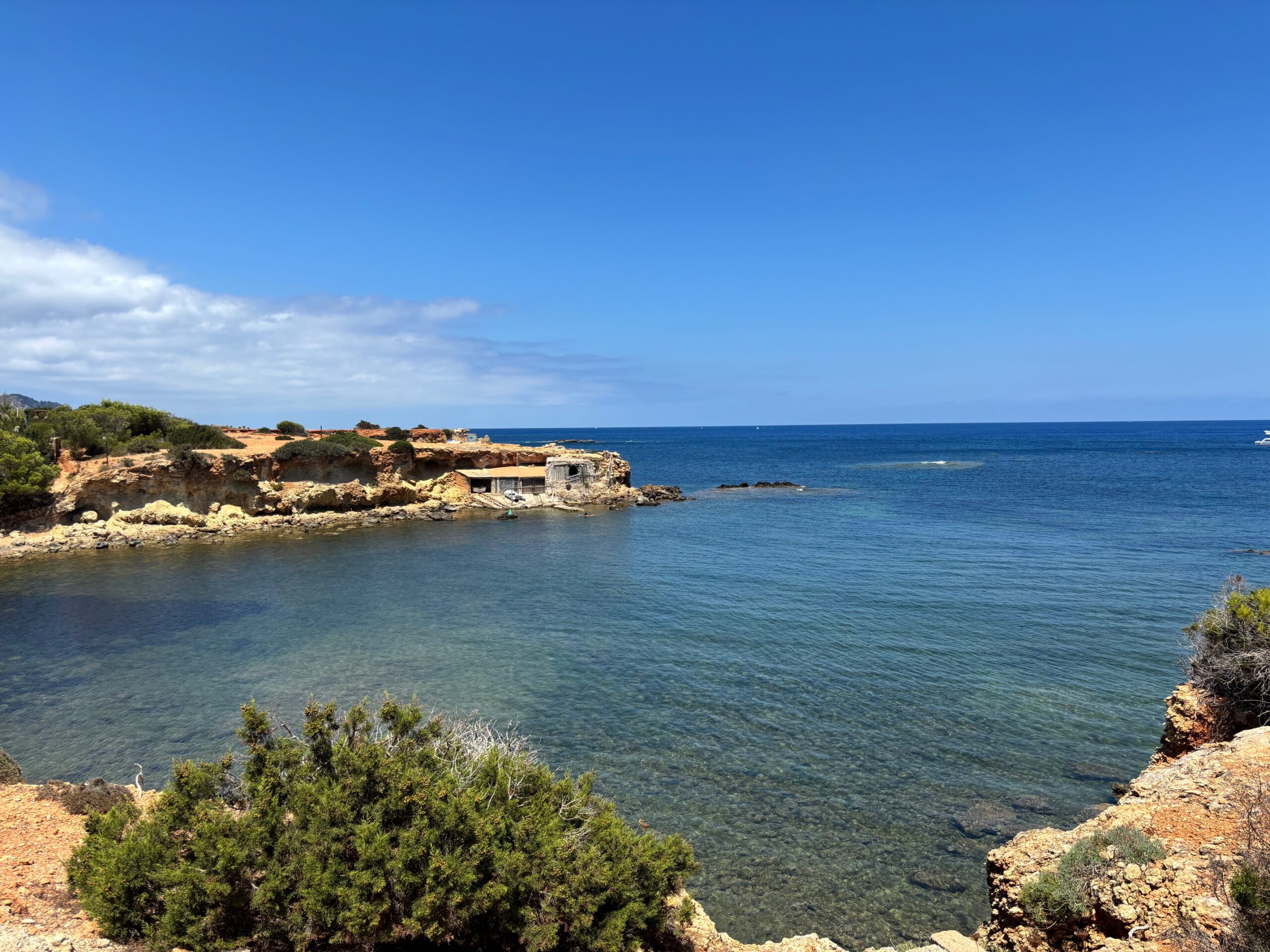 If you love nature and adventure, the hike to Cala Aubarca is a must. This rough bay is one of Ibiza’s best-kept secrets. On your way down, you’ll pass dramatic cliffs and a natural stone arch that adds a magical touch to the scenery.